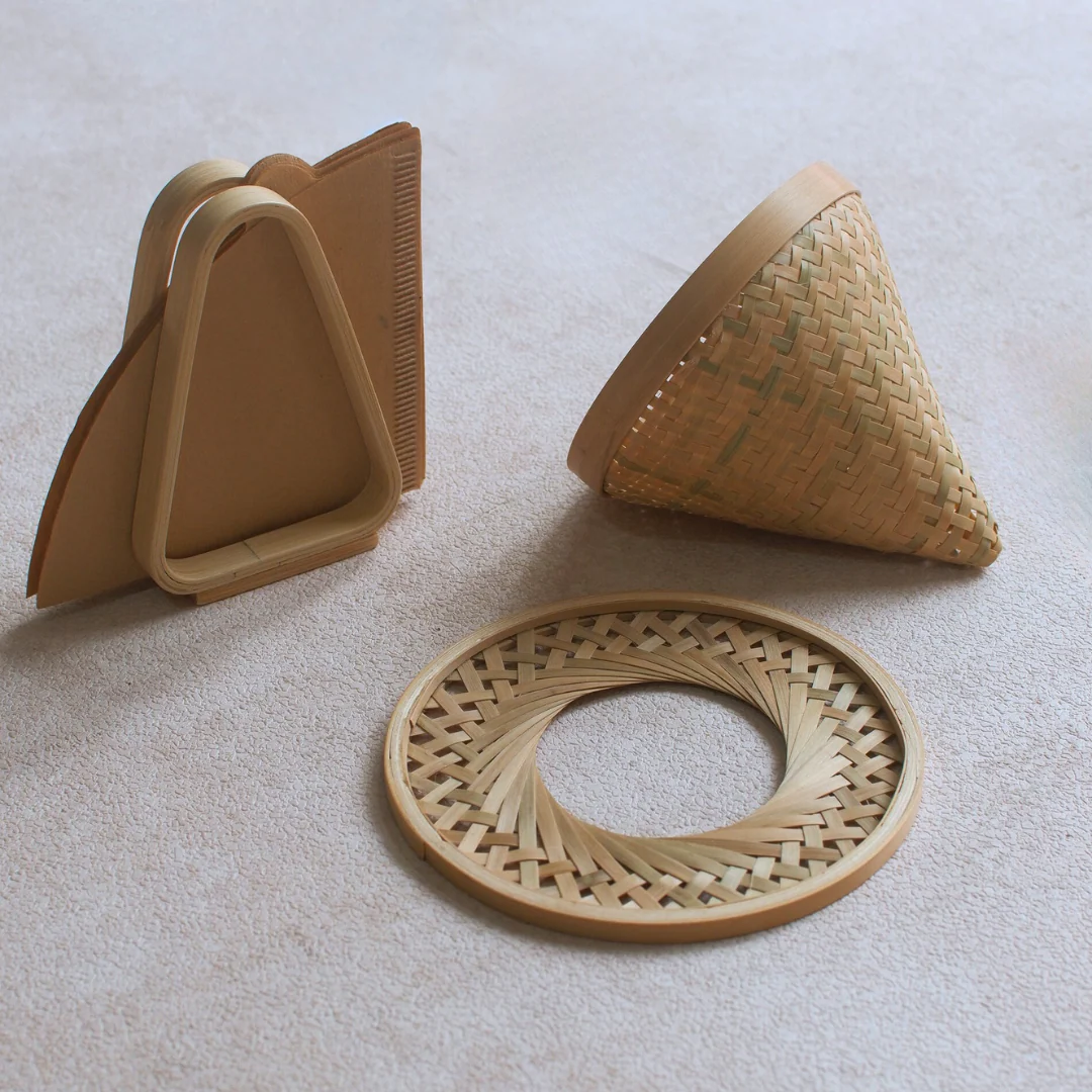 Brew your coffee the natural way with the Bamboo Coffee Strainer Set. Handwoven by skilled