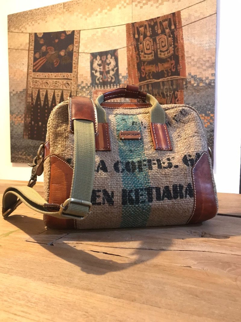 Office Bag yang terbuat dari bahan benang jute yang ditenun oleh pengrajin menggunakan alat tenun